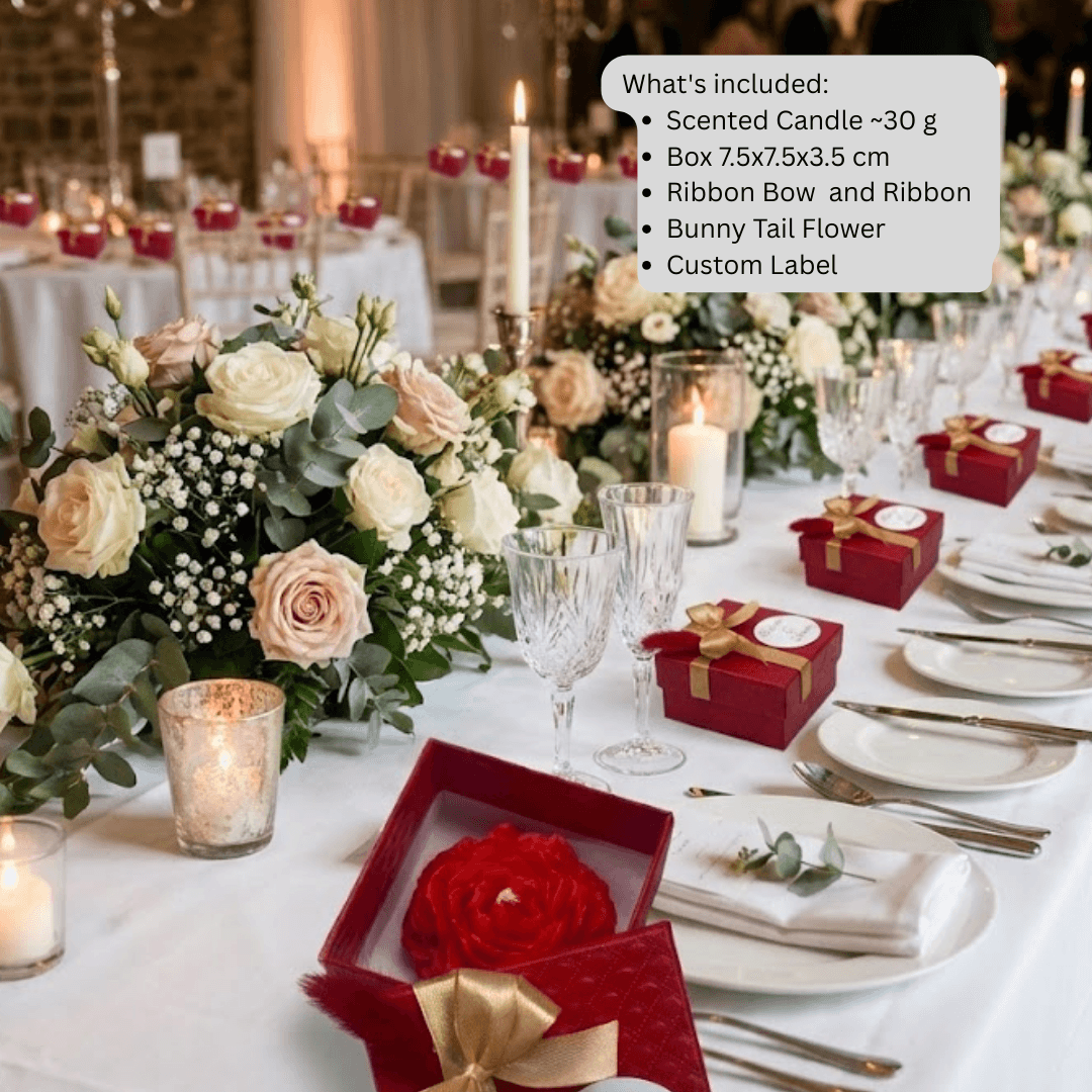 edding Favour Peony Scented Candle in Premium Hard Box – Custom Box Color, Ribbon & Flower, Personalized Wedding Gift, Luxury Guest Favours