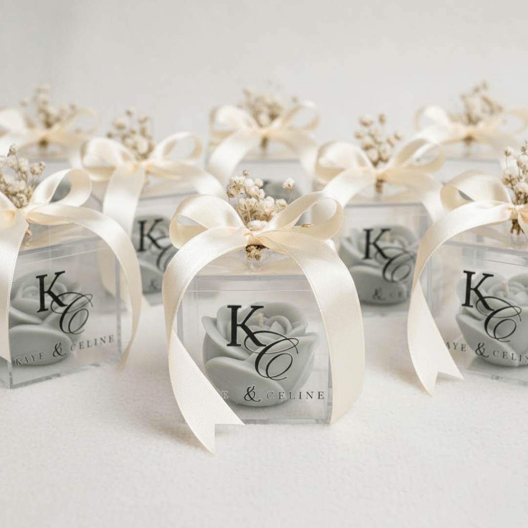 Description: Delight your guests with our Rose M wedding favour candle in a 200ml glass jar with a natural wooden lid. Includes a free organza pouch and custom label – perfect for elegant weddings and bridal showers. Handcrafted to add a timeless, fragrant, and personal touch to your celebration.