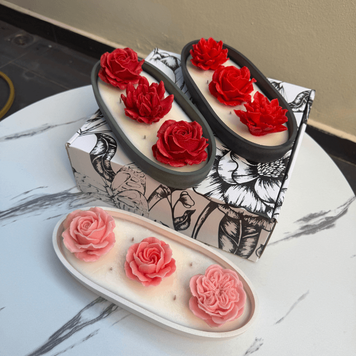 Artisan floral scented candle in a modern cement container. Handmade in Malaysia. Ideal for birthdays, Valentine’s Day & corporate gifts.