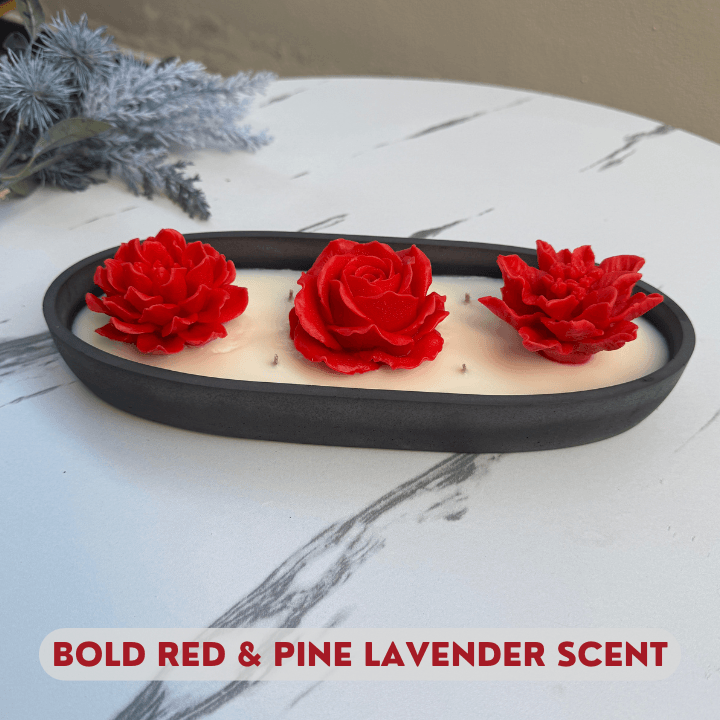 | Colour & Scent | Light Pink – Vanilla Bloom, Pink Red – Pine Lavender, Red – Pine Lavender |