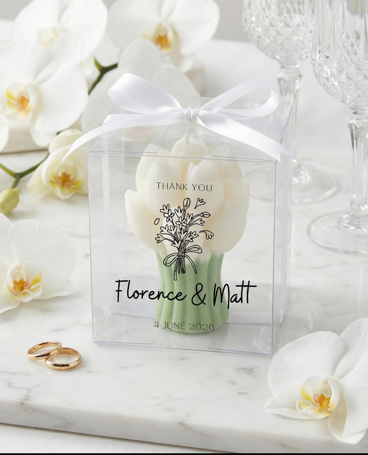Tulip Bouquet 85g In Transparent Box | Scented Candle Beeswax & Soy Wax | Custom Wedding Gift / Kahwin Doorgift / 精美蜡烛