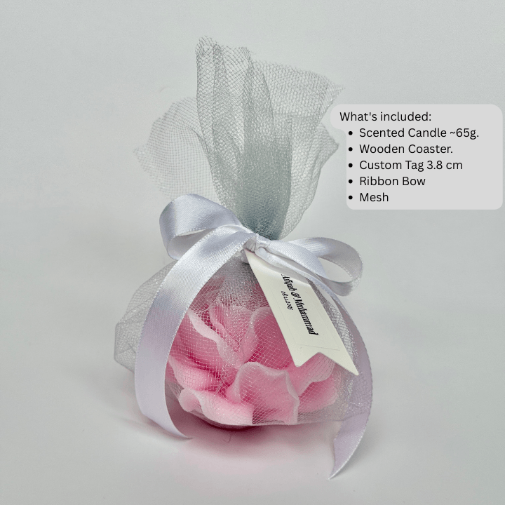 The wooden coaster adds a cosy, organic touch while offering practical protection for surfaces, making the candle both decorative and functional. A popular choice for weddings, corporate events, and meaningful celebrations where detail and presentation matter.